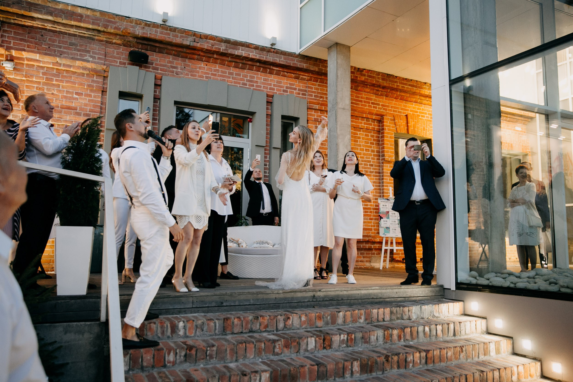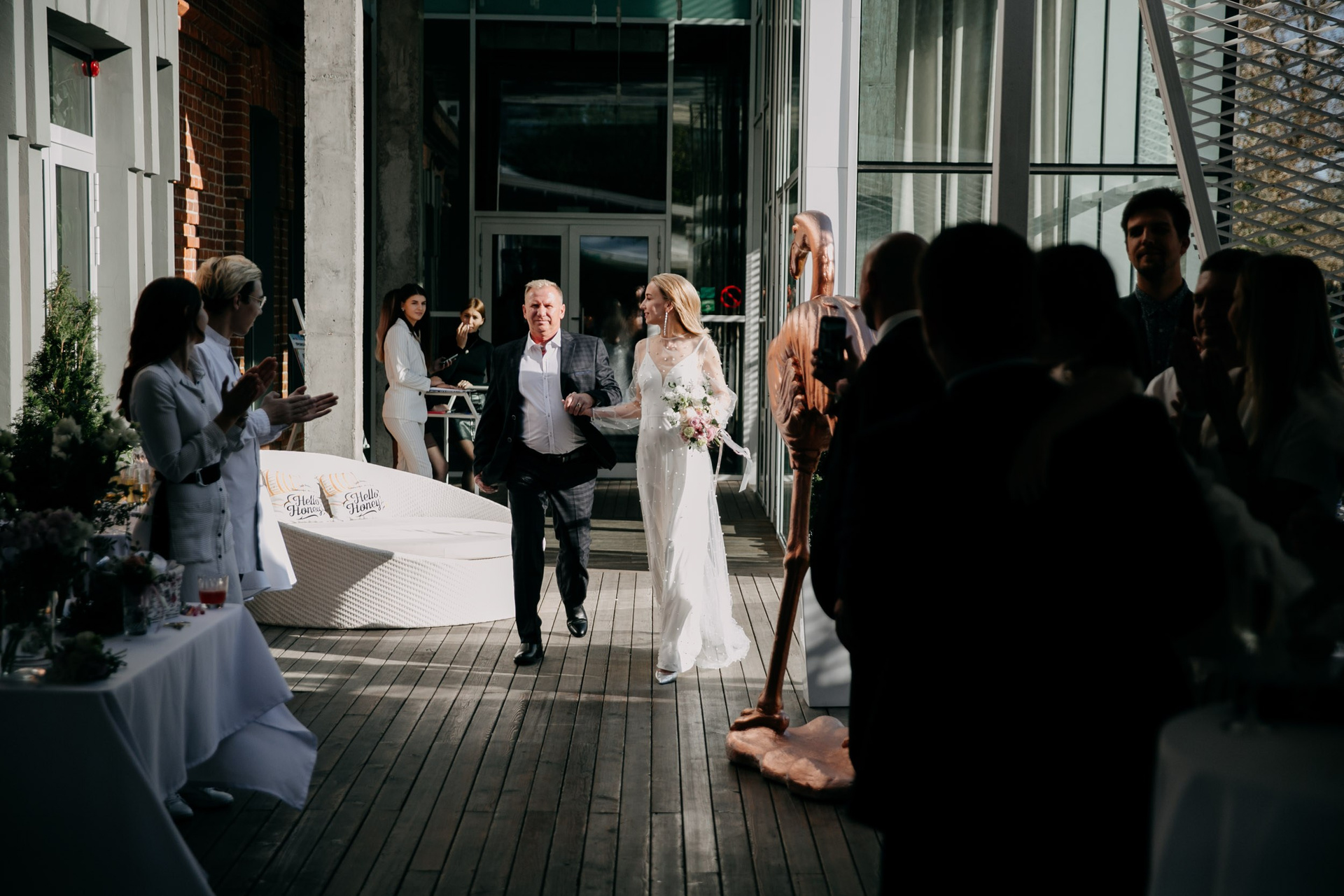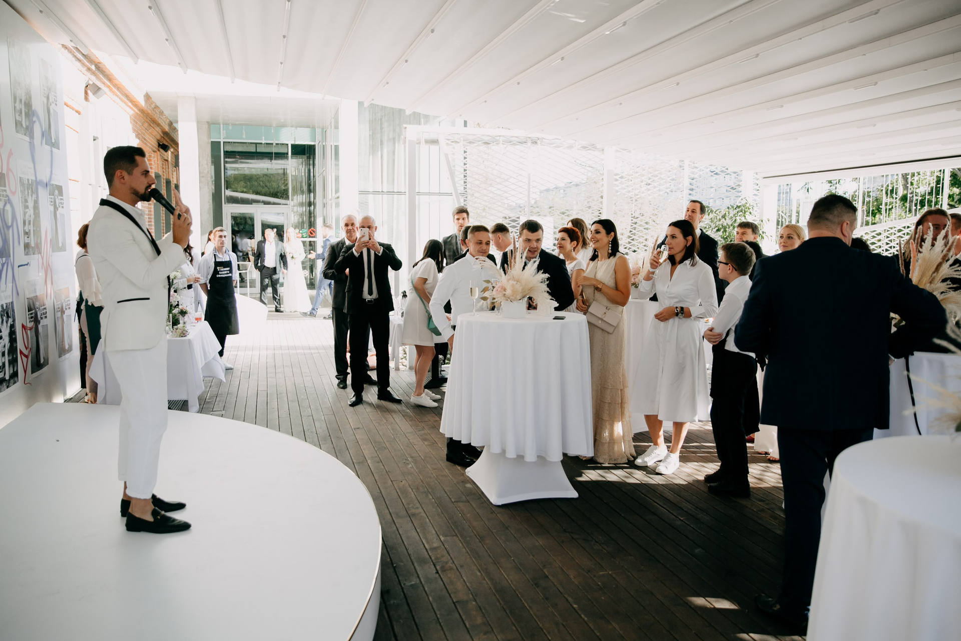 В целом отличный формат где гости не сидят за столами, а общаются, знакомятся, веселятся, и участвуют в общем веселье вместе с молодоженами, ресторан Эхо очень подходит для такого формата свадеб