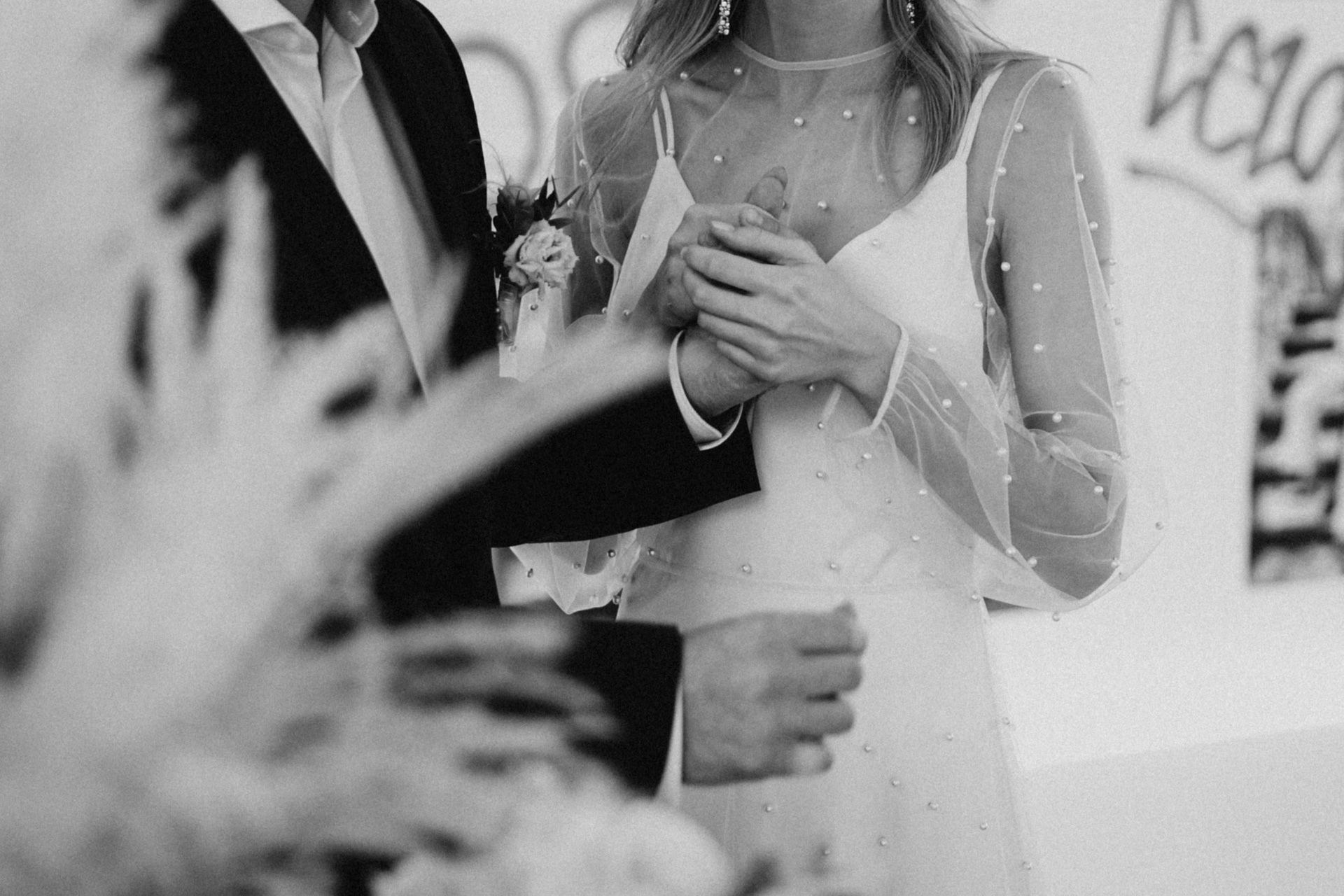 Эта свадьба в черном белом цвете взятом за основу, направила общее настроение к лаконичности во многих моментах, и выделила внимание на главном, на рождении новой семьи и радости за нее